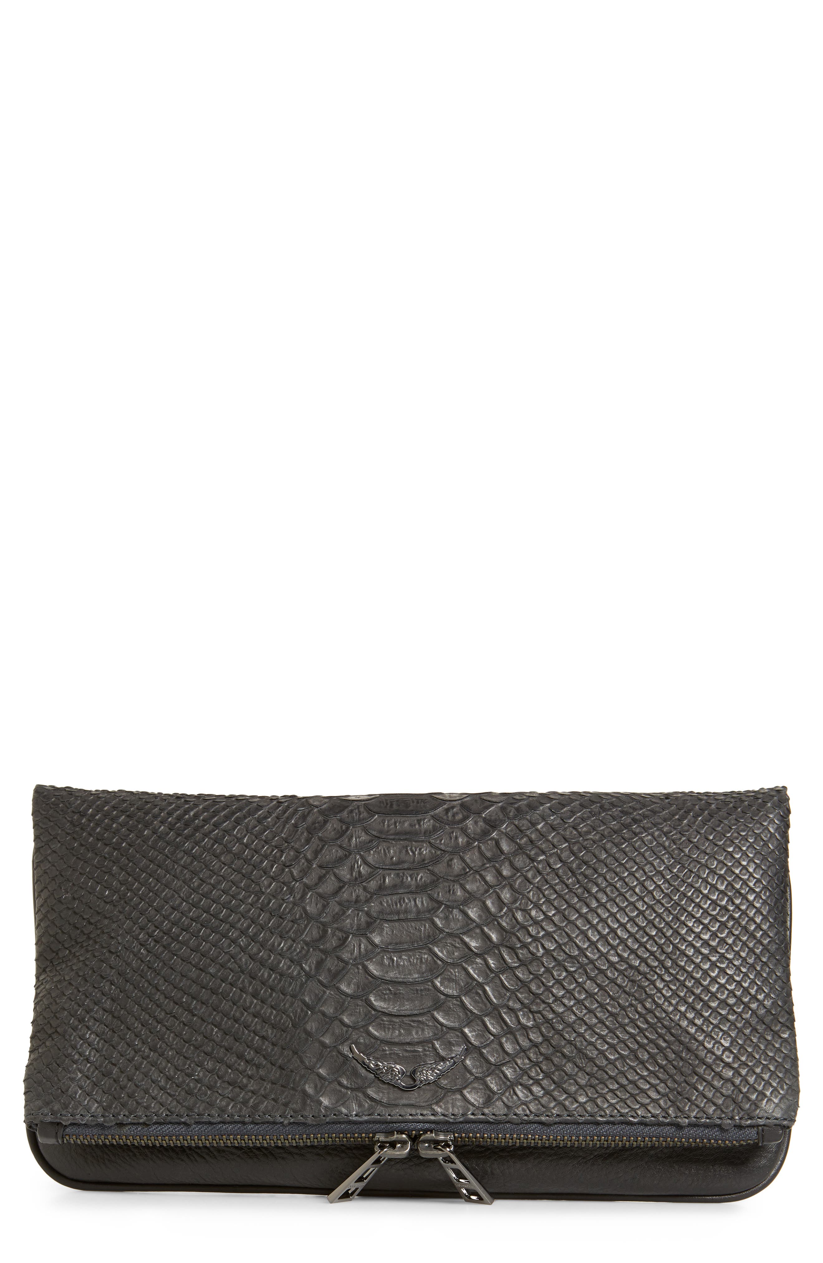 Zadig Voltaire Rock Savage Croc Embossed Leather Clutch Nordstrom