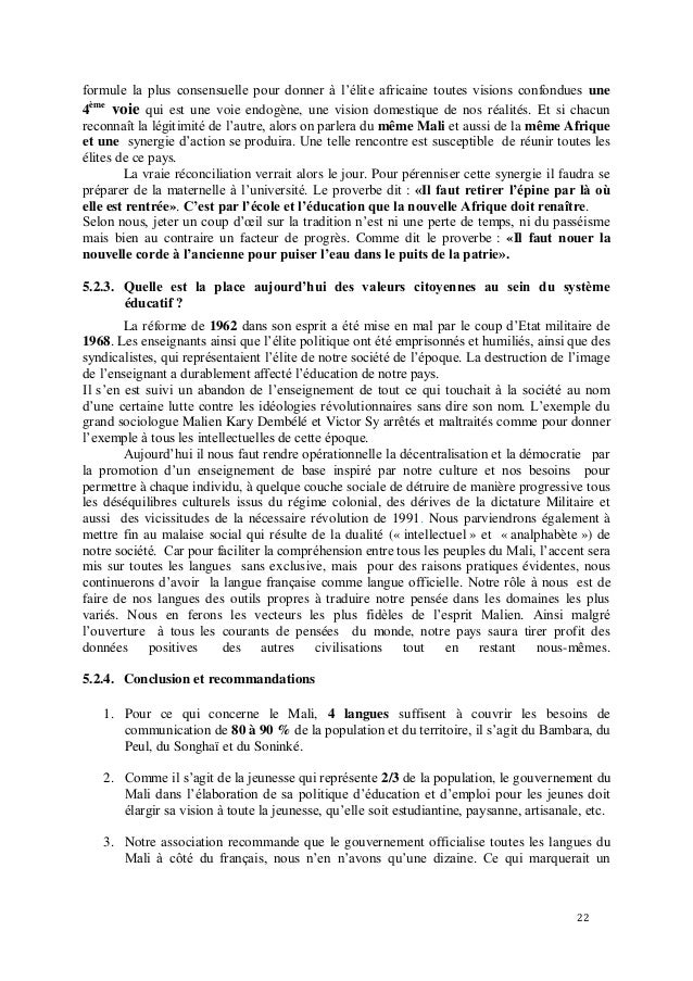 Quelle Education Pour Renforcer La Citoyennete Au Mali Octobre 2010